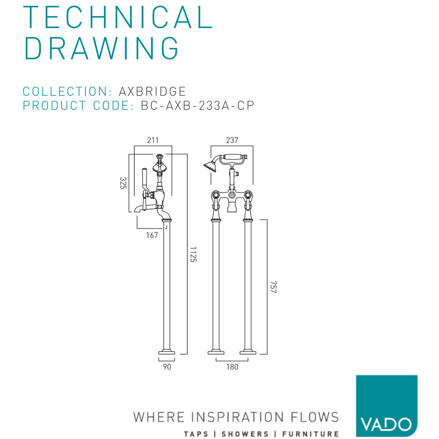 Vado Axbridge Traditional Floorstanding Bath Mixer Tap with Shower Handset - Lever Handles.