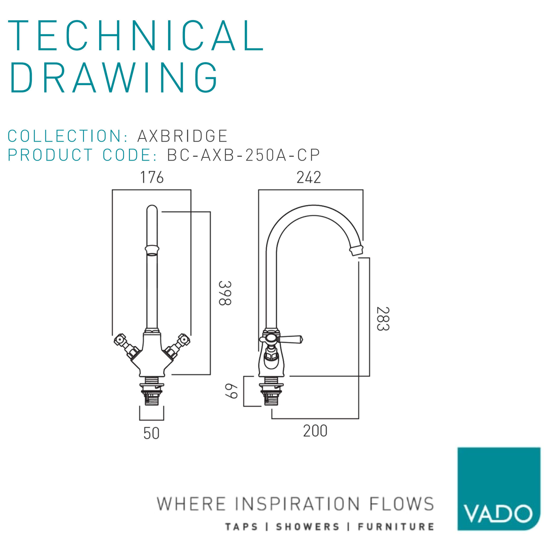 Vado Axbridge Traditional Kitchen Sink Mixer Tap with Curved Swivel Spout - Ceramic Handles.