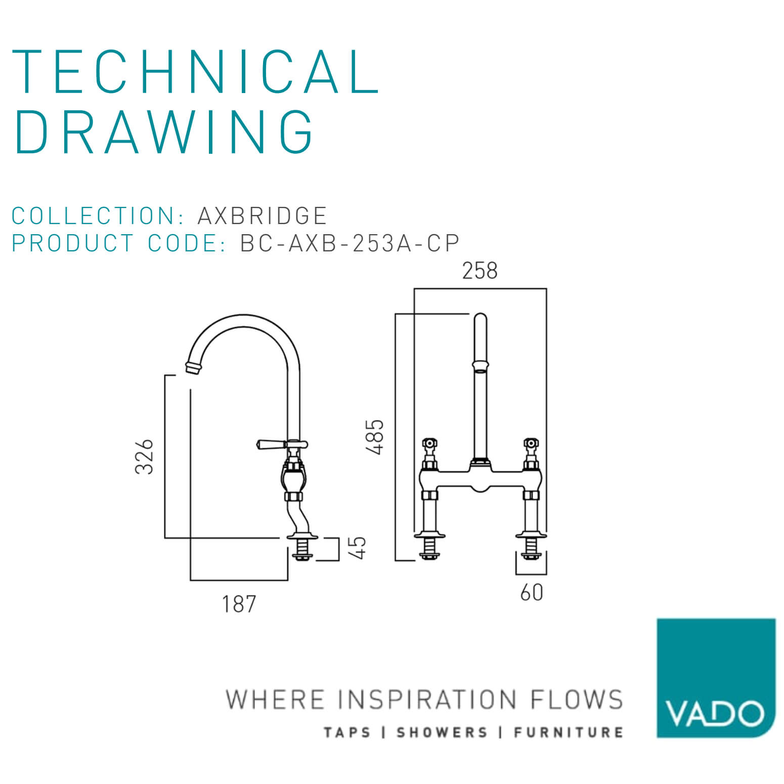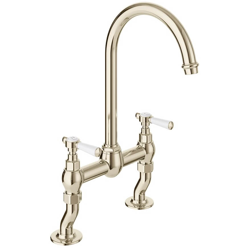 Vado Axbridge Traditional Bridge Kitchen Mixer Tap with Swan Spout - Ceramic Handles.