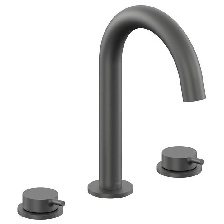 Vado Safari 3 Hole Contemporary Basin Mixer Tap with Curved Spout - Stick Handles
