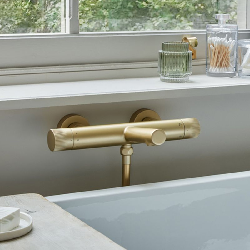 Vado Safari Thermostatic Bath Shower Mixer Tap with Diverter - Fluted Knob Handles - Wall Mounted