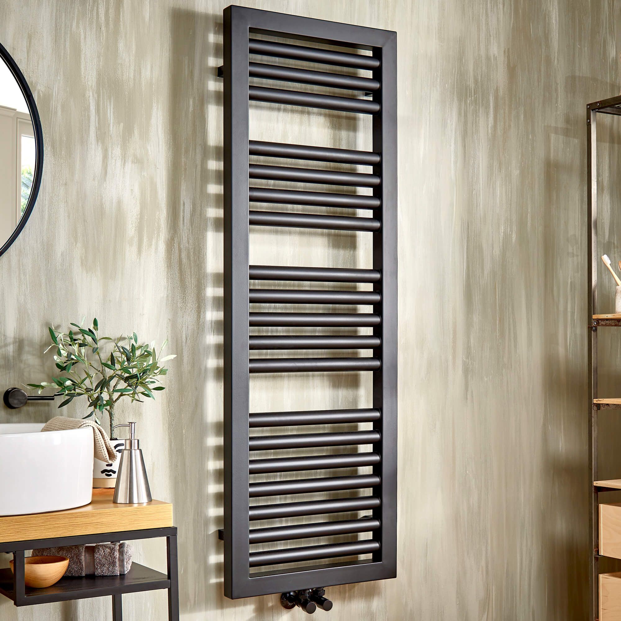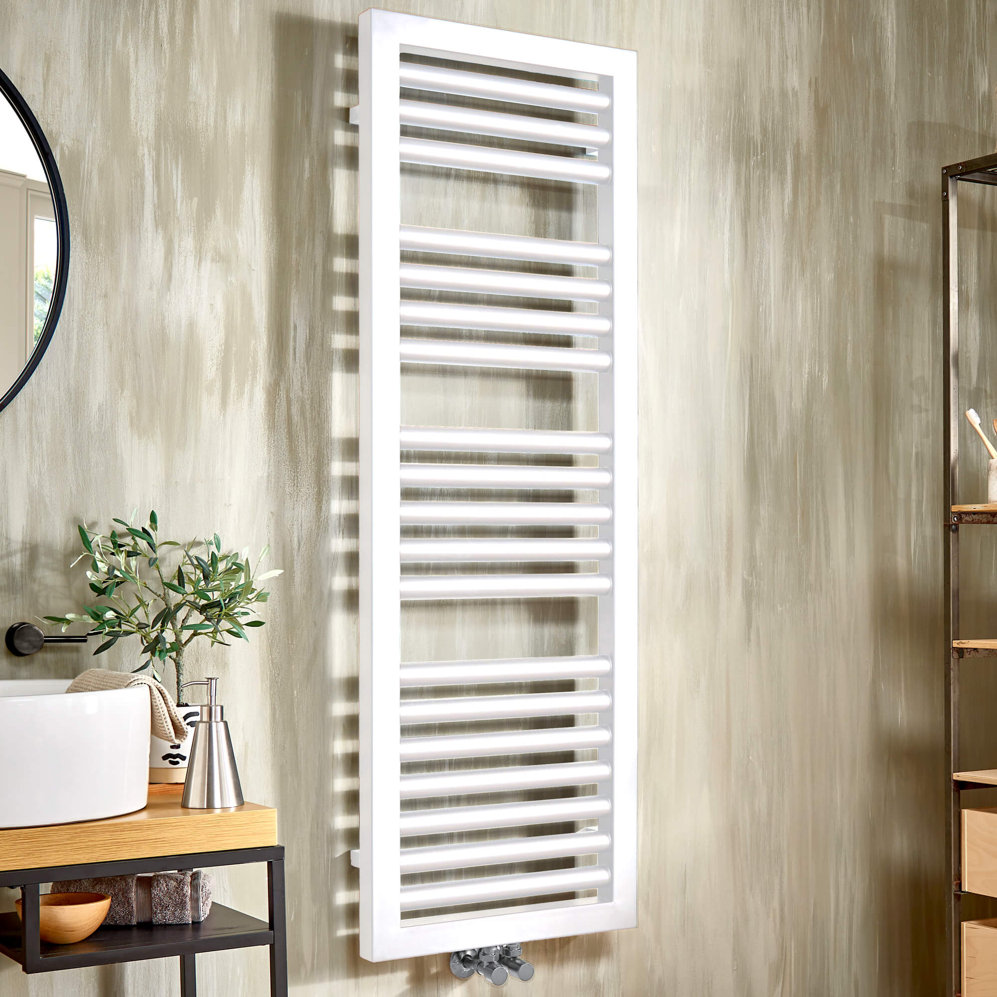 Vogue Contrast Wall Mounted Vertical Straight Heated Towel Rail - Mild Steel - 500 x 1200mm