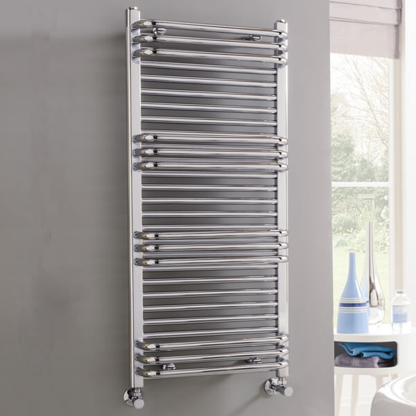 Vogue Tempo Straight Multirail Chrome Heated Towel Rail - Mild Steel - 500mm Wide.