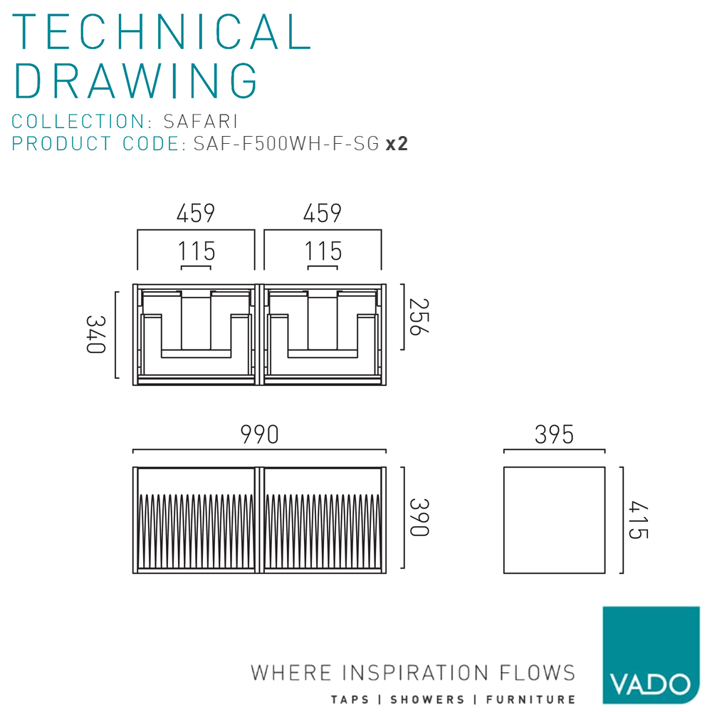 Vado Safari Semi-Fluted Wall Mounted Double Vanity Unit - 2 Drawer - 415mm High.