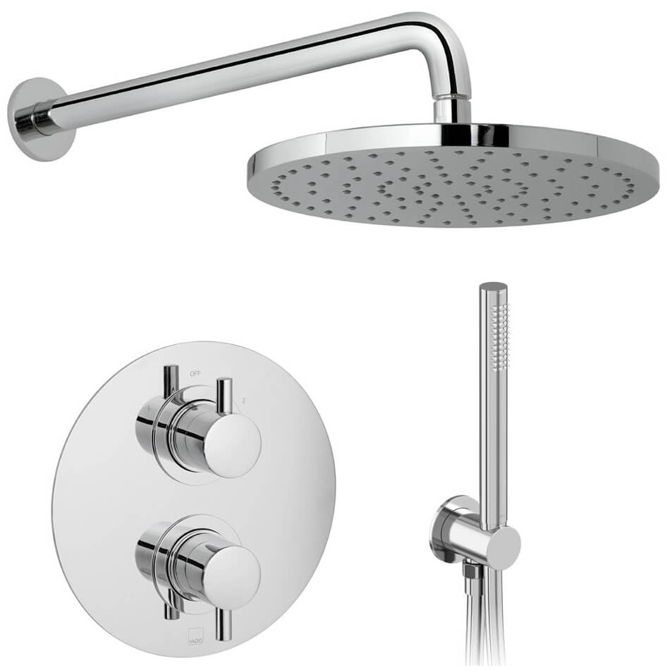 Vado Celsius Chrome Thermostatic Shower Mixer Valve with Zoo Kit and Satun Fixed Head.