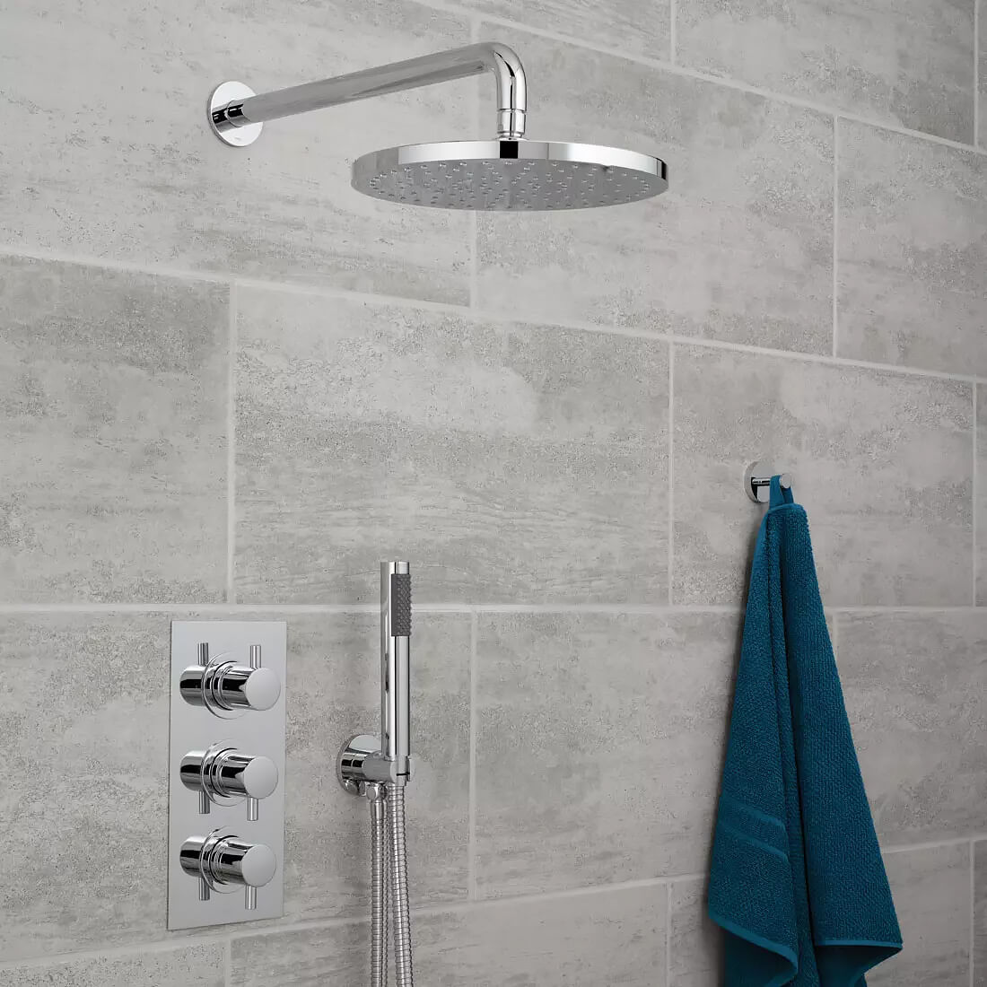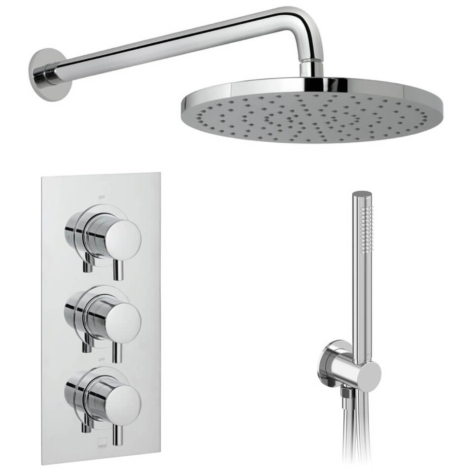 Vado Celsius 2 Outlet Chrome Thermostatic Valve with Round Head and Zoo Shower Kit.