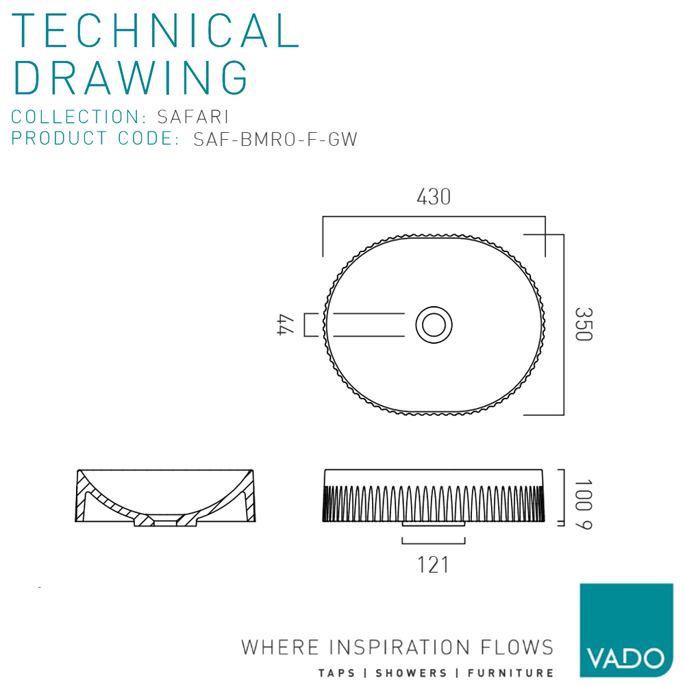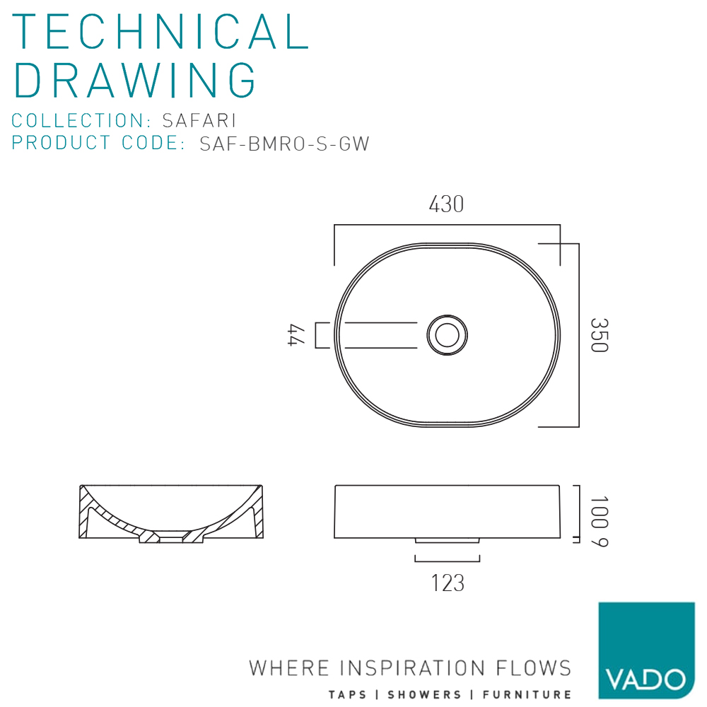 Vado Safari Contemporary Oval Countertop Basin - 430 x 350mm.