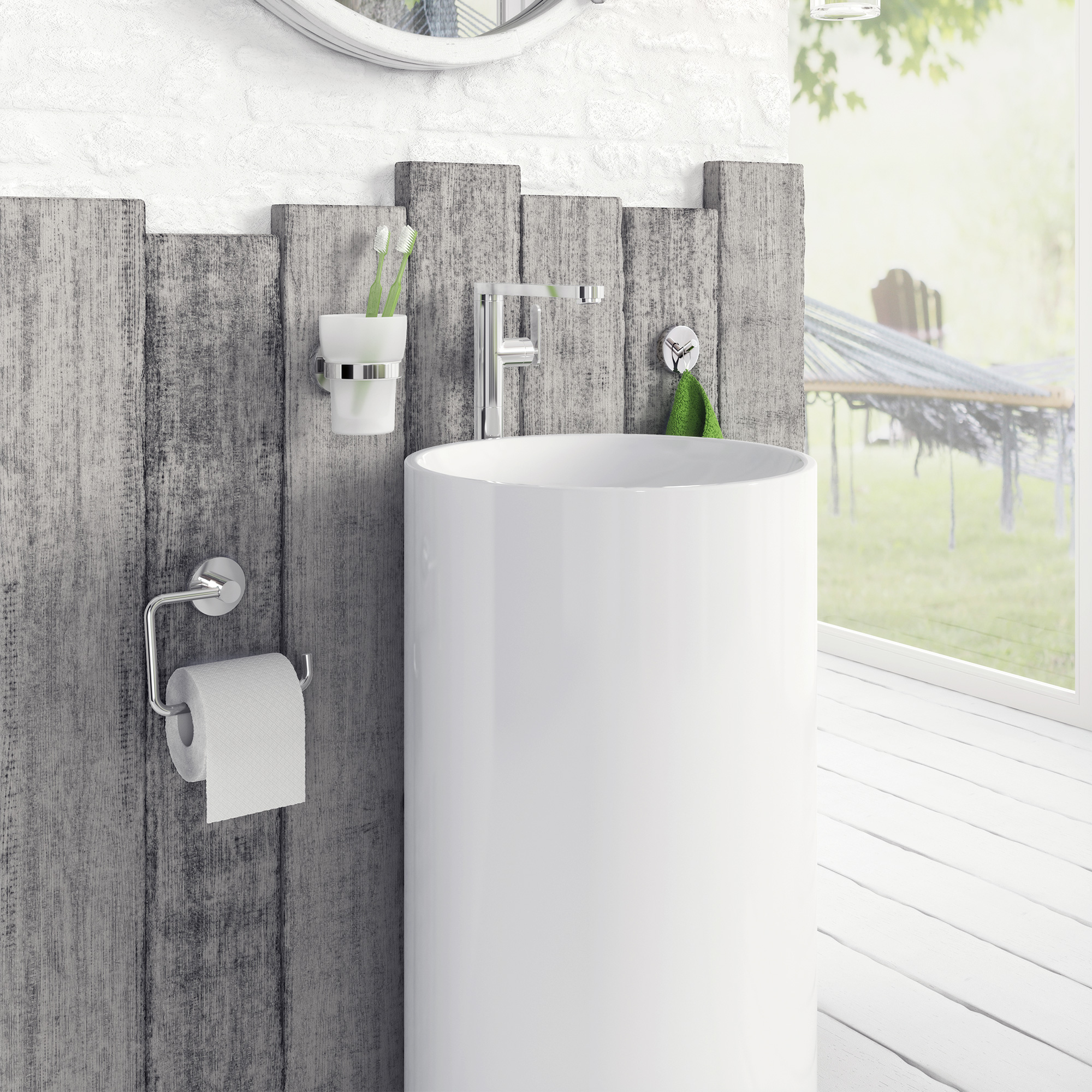 This is a simple and elegant toilet roll holder. I am delighted with it.