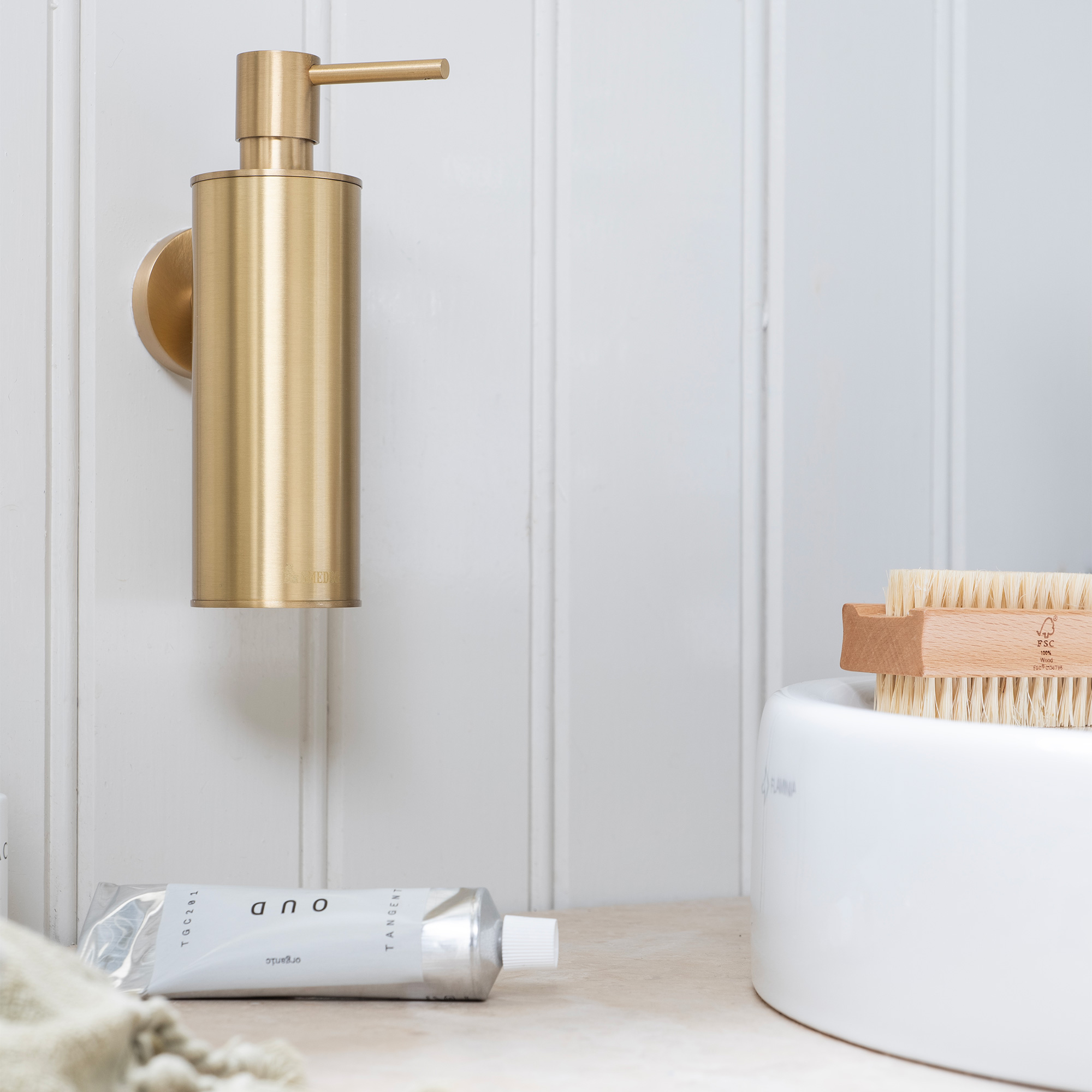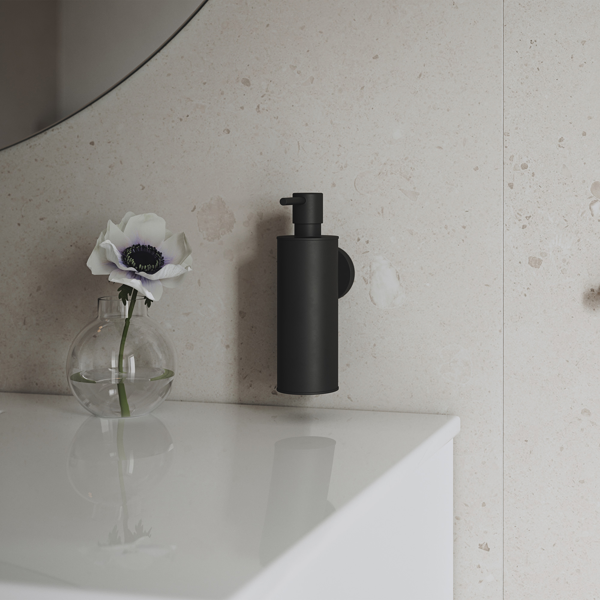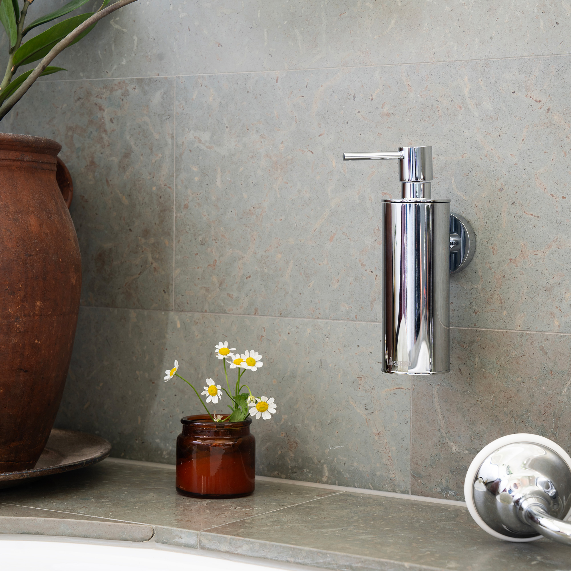 The cylindrical format of the design combined with a polished chrome surface finish inspires and delights. It can team well with a large, central sink, working expertly to dispense soap. The home Soap Dispenser manufactured by Smedbo is anchored on utilitarian principles. The accessory is supplied with a holder for wall-mounted installation.