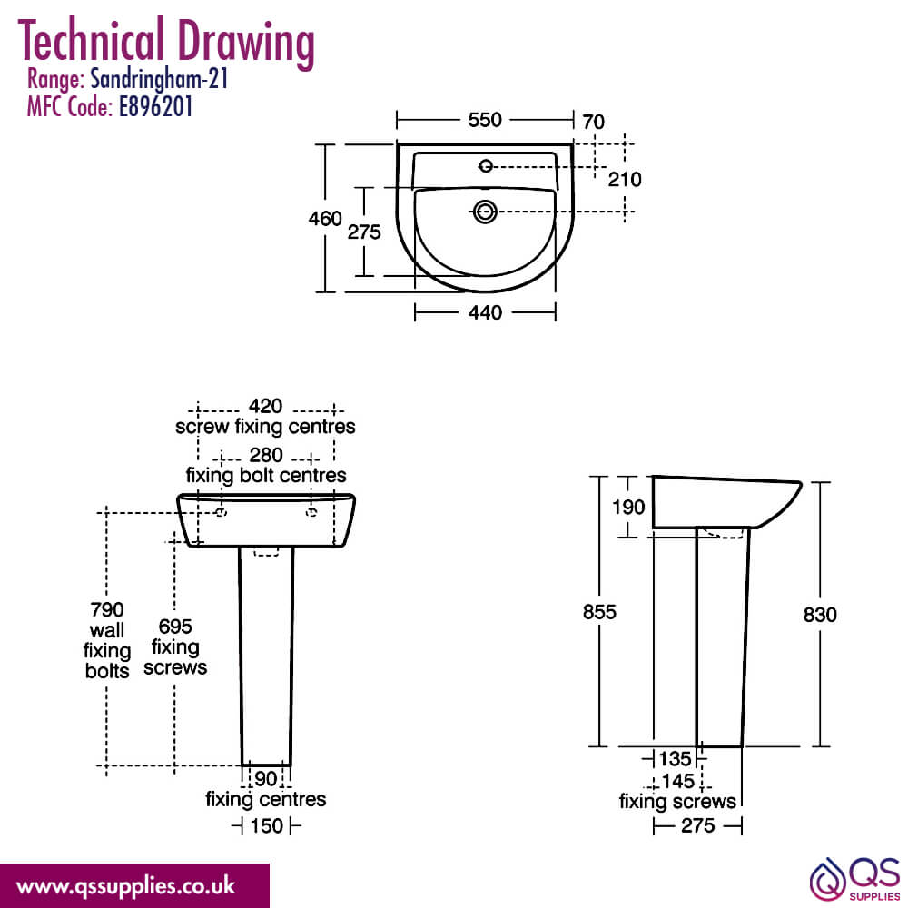 Exclusive white finish pedestal to match up with your basin! Please Note: The image shown is just for illustration purposes only.