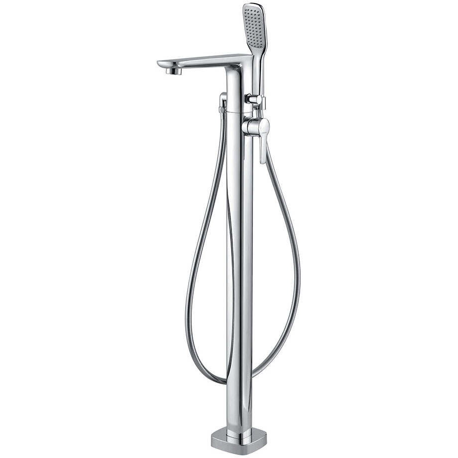 Flova Urban Square Floorstanding Chrome Bath Shower Mixer Tap - Side Action Flat Handle
