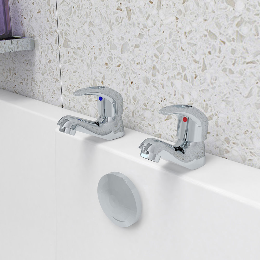 Imex Dv8 Chrome Pair of Bath Pillar Taps - Loop Lever Handles