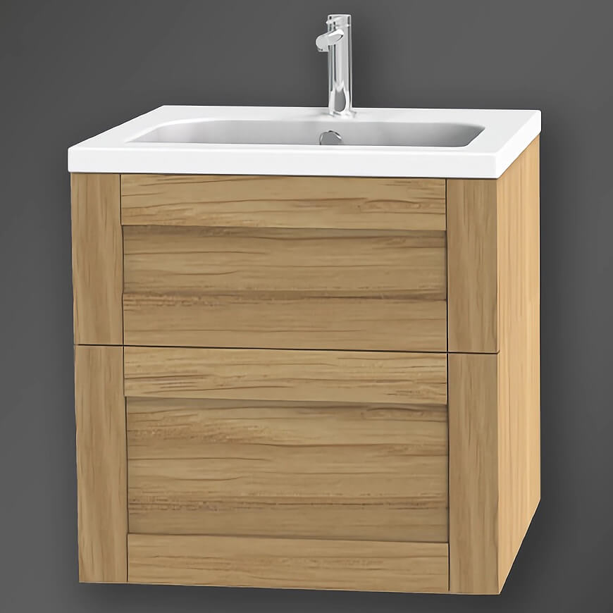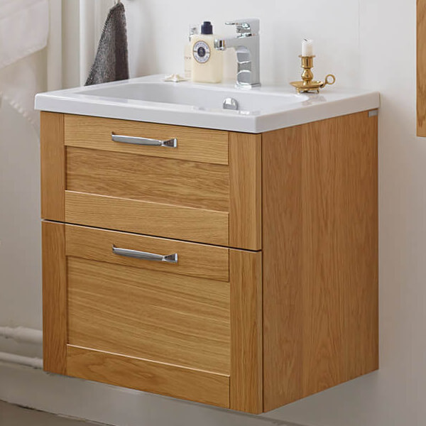 Miller London Natural Oak Wall Hung Vanity Unit - 2 Drawers.